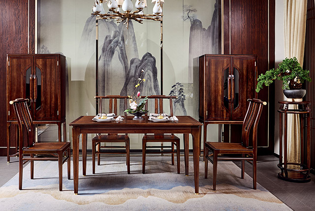 唐明雅居新中式家具是中國傳統(tǒng)審美觀念與時尚元素的相互融合,講究設計上的層次與線條,強調的是舒適與時尚的結合。